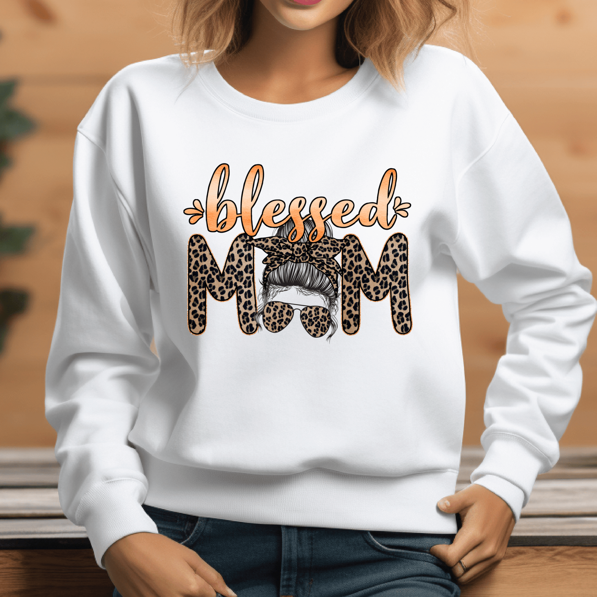 Be a chic mama with this fashionable Leopard Print Blessed Mom Sweatshirt!