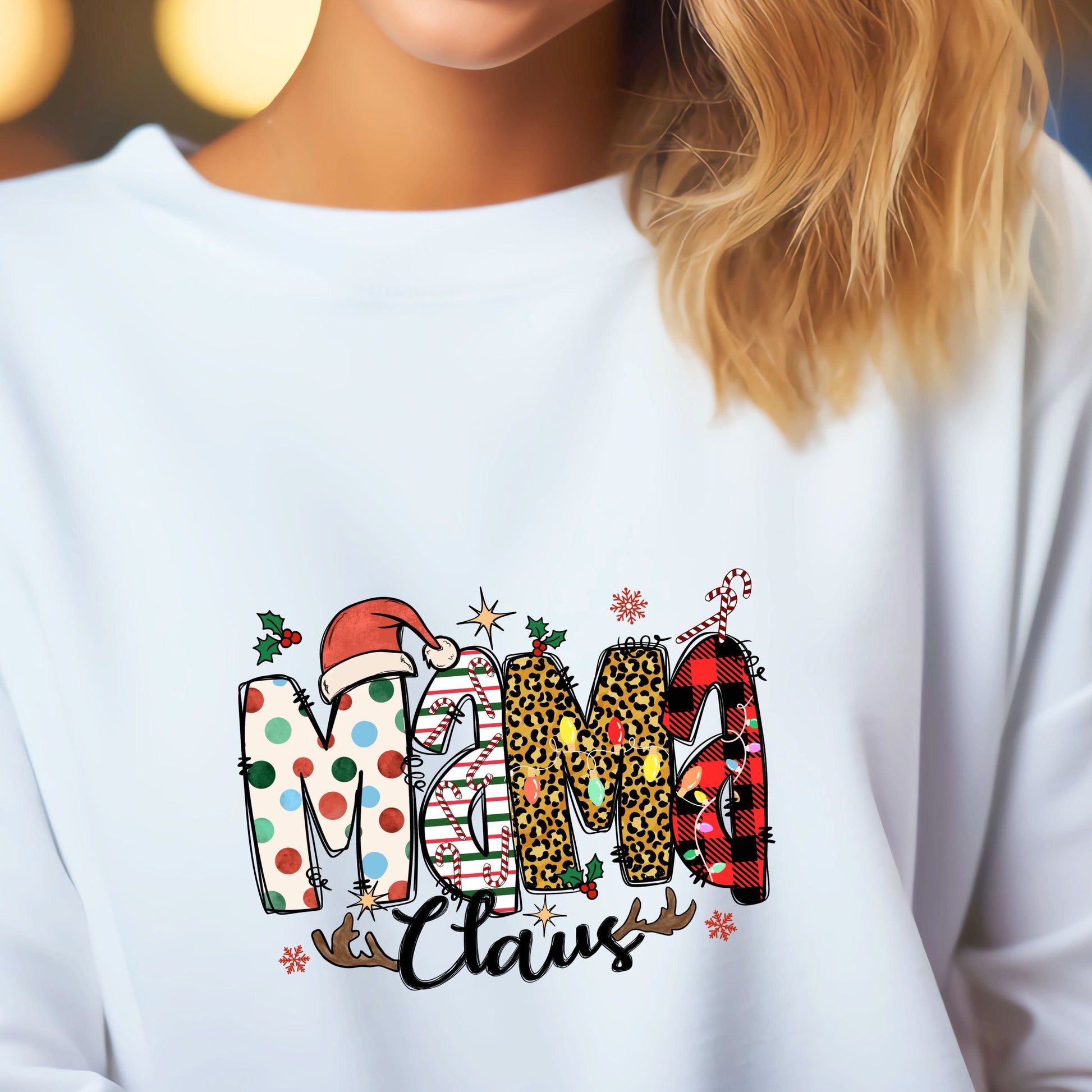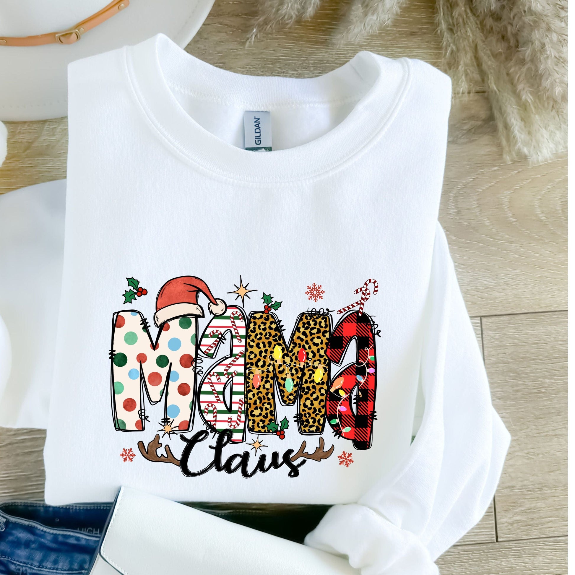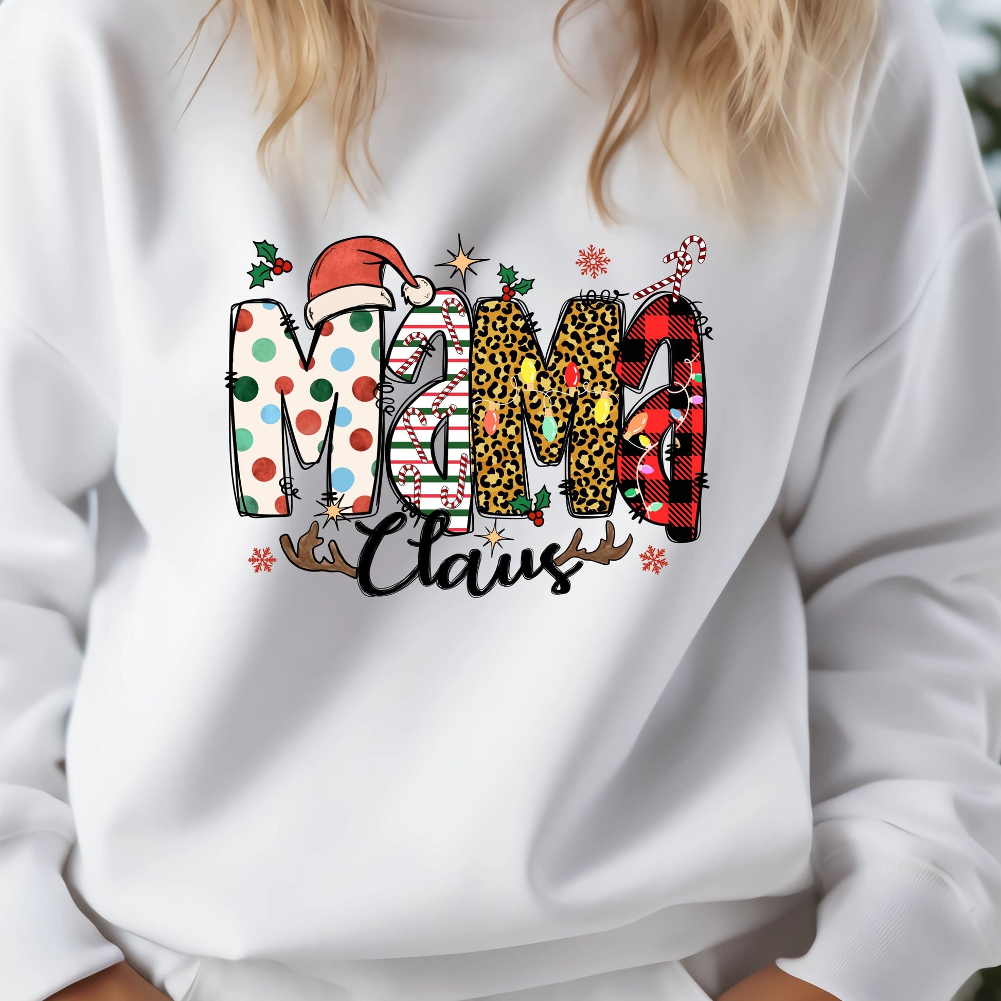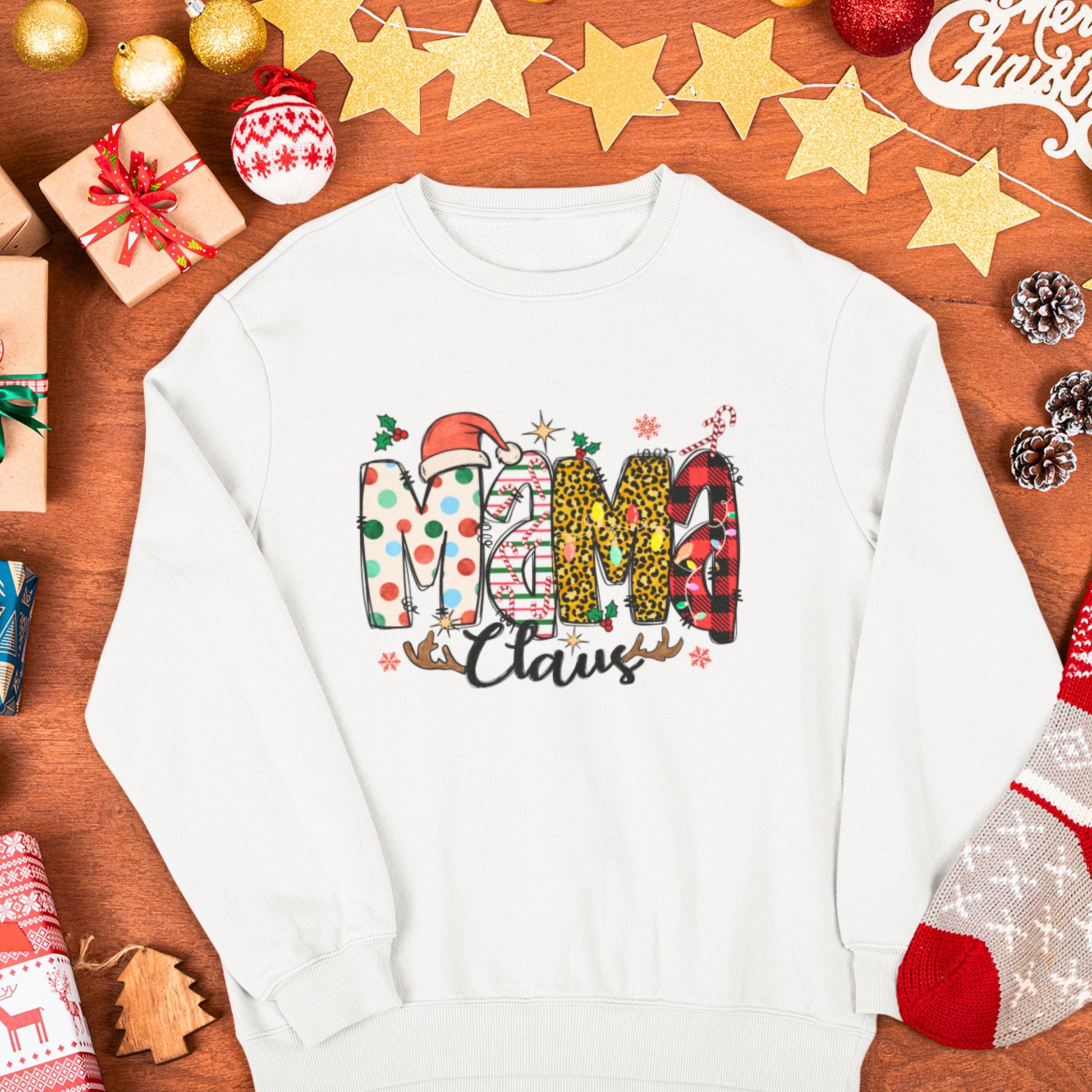 Look stylish and feel comfy in this MAMA CLAUS sweatshirt!