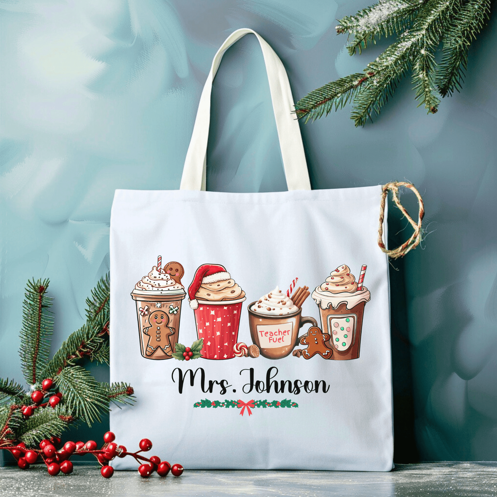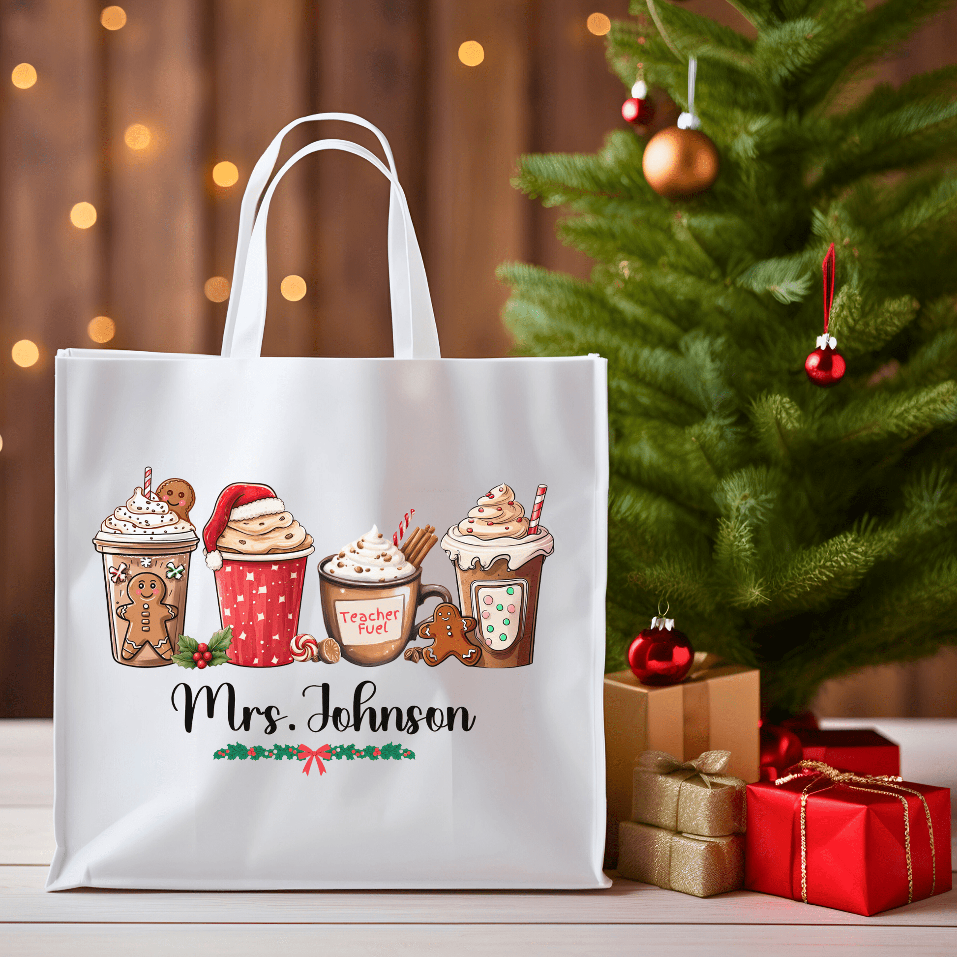 Teacher’s Festive Sip Tote: Personalized Christmas Edition